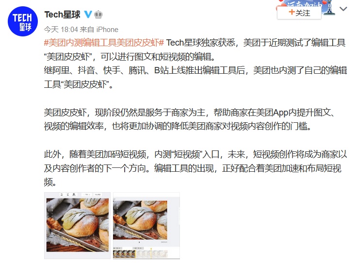 美团近期也开始入局短视频,首款编辑工具“美团皮皮虾”,目前只面向商家,但后期也有可能向C端用户开放。
